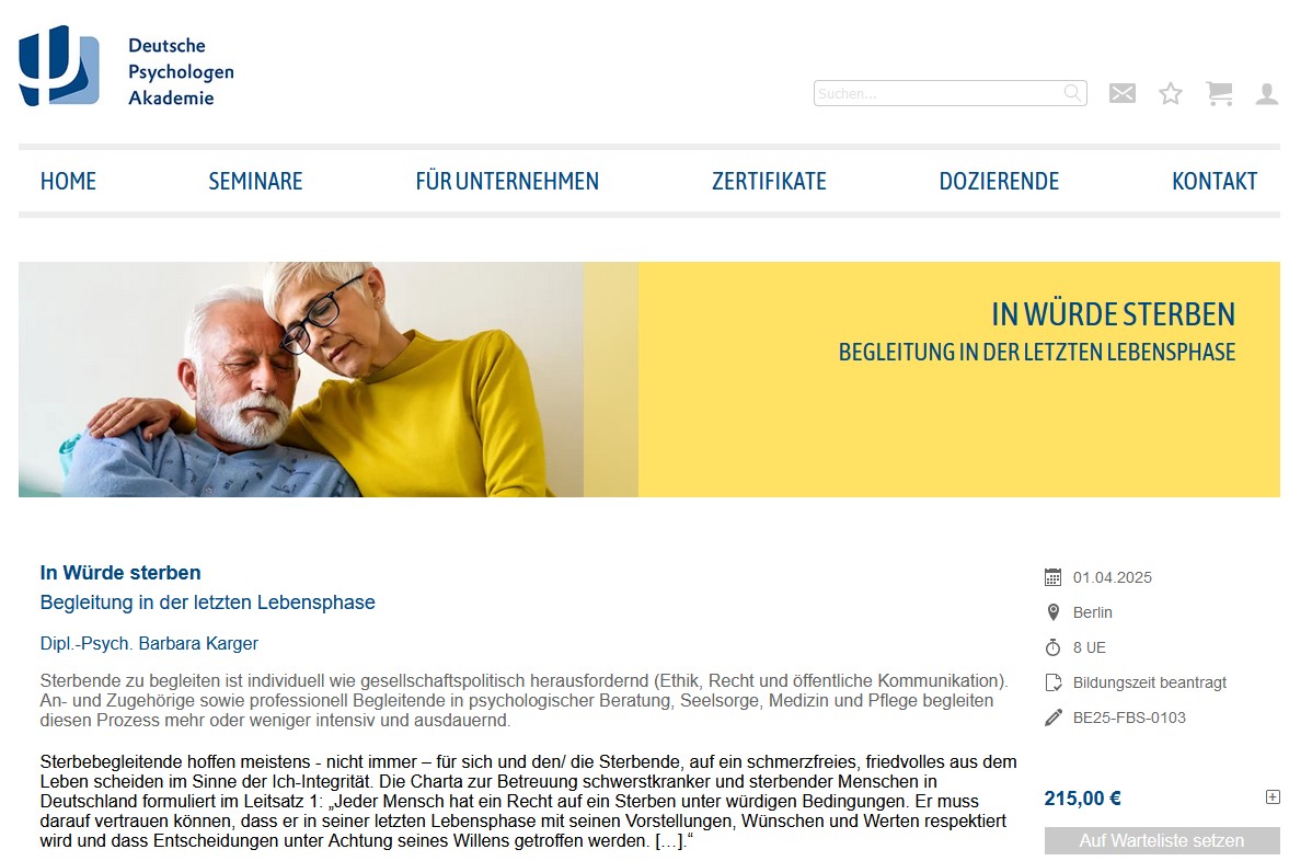 - 01/2023: Fortbildung: "Letzte Hilfe" - Sterbende begleiten