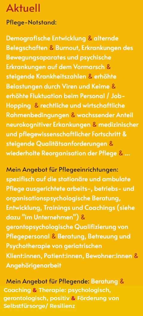 Beratung, Coaching, Therapie & Bildung, damit ARBEITen, daSEIN, ALTERn und PFLEGEn gut wird!